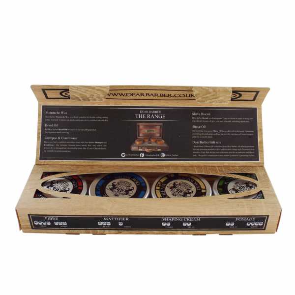 Zestaw past 4x20ml Zestaw past przydatny zarówno w salonie Barberskim jak i do użytku domowego. Świetny pomysł na prezent. W zestaw wchodzą paty: fiber, mattfire, shaping cream i pomada.