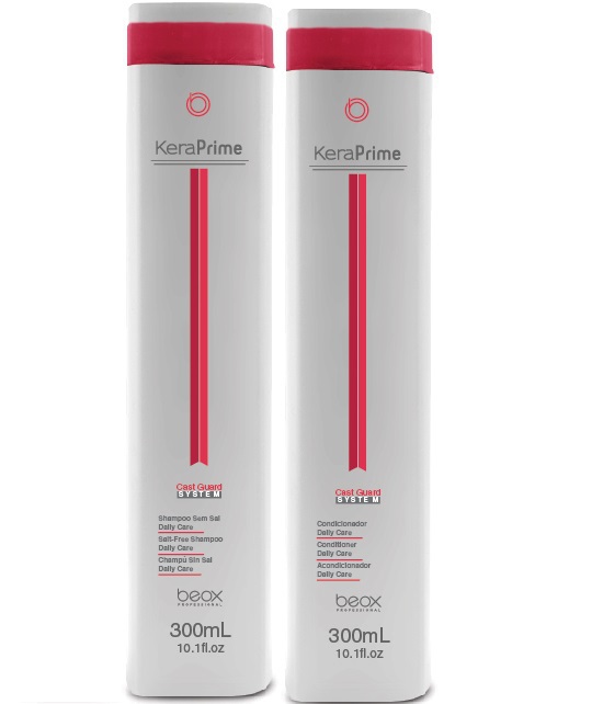 KeraPrime – Complete Brazilian Keratin Blow-dry System BEZ FORMALDEHYDU Co to jest KeraPrime ? Linia KeraPrime – Brazilian Keratin Blow-dry została specjalnie opracowana, aby całkowicie odmłodzić włosy. Unikalna formuła ponownie wyrównuje włókna włosów, odbudowując zniszczone włosy. Chroni również kolor przed blaknięciem, wzmacnia włosy oraz przywraca miękkość i połysk. System KeraPrime zapewnia naturalnie gładkie, zdrowo wyglądające włosy. Efekt po pełnym zabiegu keratynowego prostowania utrzymuje się średnio 5-6 miesięcy. Codzienna pielęgnacja KeraPrime KeraPrime Daily Care Szampon i odżywka są zaprojektowane w celu wzmocnienia i utrzymania efektu włosów po zabiegu keratynowego prostowania , pozostawiając włosy głęboko udbudowane i nawodniione. Domowa pielęgnacja zabezpieczy włosy przed blaknięciem koloru i naprawi uszkodzenia wywołane zabiegami termicznymi i chemicznymi, a także przedłuży efekty kuracji keratynowej. Pozwoli utrzymać efekt wygładzonych i lśniących włosów nie wypłukując keratyny. Pozwoli to cieszyć się efektami zabiegu przez kilka miesięcy. Pojemność: 300ml