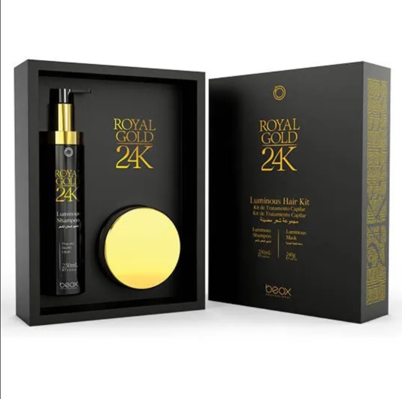 Zestaw Home do pielęgnacji włosów po zabiegu Royal Gold 24 K / Beox Brasil Beox Brasil stworzył innowacyjny zabieg Royal Gold 24K trwałe wygładzenie i regeneracja struktury włosów. Ten zestaw służy do pielęgnacji i utrzymania efektu kuracji, która zapewnia zdrowe i niezwykle jedwabiste włosy po zabiegu wygładzenia w salonie fryzjerskim. Szampon i maskę można stosować codziennie, aby włosy były proste, lśniące i naturalnie piękne. W skład zestawu wchodzi: Szampon rozświetlający Luminous 250ml Zawiera naturalne olejki i składniki aktywne, myje, wzmacnia i pozostawia włosy miękkie i odżywione, nadając im niesamowity połysk. Maska rozświetlająca Luminous 240g Opracowany z ekskluzywnych składników aktywnych i szlachetnych olejków, zwiększa odporność włókna włosów, głęboko odżywiając i nawilżając je. Sposób użycia: 1- Nałóż szampon na mokre włosy i masuj. Dokładnie spłucz i powtórz proces, jeśli to konieczne. 2- Nałóż maskę na wilgotne i czyste włosy, pasmo po paśmie. Pozwól mu działać przez 5 do 10 minut. Dokładnie spłucz. Beox to światowy lider w produkcji innowacyjnych kosmetyków w Brazylii. Pojemność: box 250ml + 240g