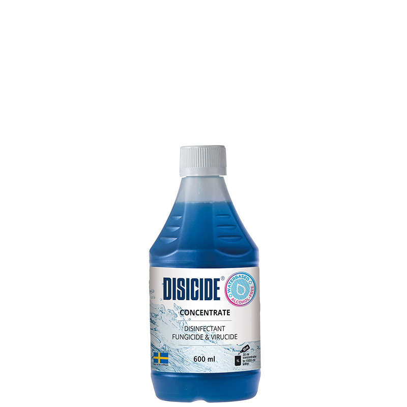 KONCENTRAT DISICIDE DO DEZYNFEKCJI / 600 ml Made In Sweden Profesjonalny koncentrat do dezynfekcji narzędzi i powierzchni, bezpieczny dla użytkownika i przyjazny dla środowiska. Na bazie wody, bez alkoholu i rozpuszczalników. Do użytku w salonach: fryzjerskich, barberskich, kosmetycznych, salonach tatuażu oraz SPA, gabinetach manicure i pedicure, hotelach i centrach fitness, Środek o szerokim spektrum działania. Zabija bakterie, grzyby i wirusy. Produkt nie jest łatwopalny i nie ma klasy produktu niebezpiecznego dla transportu – UN 1903. Potwierdzone działanie antybakteryjne i antywirusowe zgodnie z regulacjami EU: EN 14561 i EN14562 Butelka plastikowa – pojemność: 600 ml – do przygotowania 20 litrów roztworu dezynfekującego. NIEZWYKLE WYDAJNY Mieszanie w proporcji 1:32 czyli 30 ml Diciside na 1 litr wody. 1500 ml koncentratu wystarcza do przygotowania aż 50 litrów roztworu dezynfekującego.
