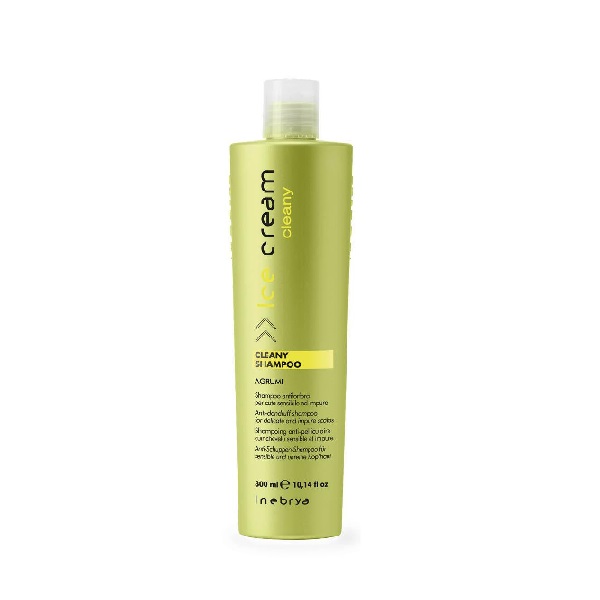 INEBRYA ICE CREAM Cleany Szampon Przeciwłupieżowy i Kontrolujący Sebum 300 ml NEW Cleany – skuteczna pomoc w walce z łupieżem, idealna do czyszczenia delikatnej skóry głowy. Szampon o wyjątkowym działaniu przeciwłupieżowym. Idealny dla podrażnionej, wrażliwej skóry głowy z problemami. Walory kosmetyczne i oczyszczające szampon zawdzięcza zawartości ekstraktów z cytryny i pomarańczy. Reguluje wydzielanie sebum i przywraca naturalną równowagę skóry. Posiada cytrusowy aromat. Sposób użycia: Nałożyć na mokre włosy, masować, po czym dokładnie spłukać.
