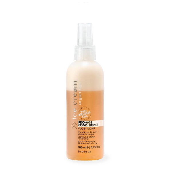 Ice Cream Argan Age dwufazowa odżywka do włosów / 200 ml Dwufazowa do włosów z olejkiem arganowym z serii Ice Cream Argan Age firmy Iebrya. Zapobiega objawom starzenia się komórkowego włókien włosa. Przeznaczony do włosów osłabionych czasem, uwrażliwionych fryzjerskimi zabiegami chemicznymi, suchych, matowych, pozbawionych blasku i łamliwych. Natychmiastowo przywraca włosom siłę, witalność, blask, elastyczność i jedwabistą miękkość. Ma właściwości antyoksydacyjne. Lekka formuła nie obciąża włosów. Stworzona na bazie naturalnych składników. Zawiera olej arganowy, olej słonecznikowy i olejek jojoba oraz filtry UV. Sposób użycia: Aplikować na umyte, osuszone ręcznikiem włosy. Nie spłukiwać. W razie potrzeby można stosować także na suche włosy.