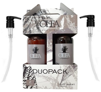 Zestaw DUOPACK – szampon + maska Baobab Oil + pompki (1000ml) Olea maska restrukturyzująca z baobabem i olejem lnianym od Dott.Solar i to głęboko restrukturyzująca maska do włosów suchych i zniszczonych o cennych właściwościach nawilżających i regenerujących. Zapewnia włosom ochronę, a także pozostawia je gładkie i subtelnie lśniące. Sposób użycia: Aplikuj na wilgotne włosy, a następnie pozostaw maskę w zależności od pożądanego efektu: na około 2 minuty w celu nawilżenia lub na około 10 minut w celu regeneracji. Spłucz letnią wodą. Pojemność: 1000 ml Szampon z baobabem i olejem lnianym od Dott.Solari Dzięki zawartości cennych składników naturalnych szampon ten nawilża i głęboko regeneruje włosy. Jego delikatna formuła dodaje blasku i miękkości przeciwdziałając puszeniu się włosów. Olej z baobabu zawiera dużą dawkę kwasów tłuszczowych nasyconych. Nadaje się do pielęgnacji skóry skłonnej do alergii. Olej lniany zwiększa elastyczność włosów, co przyczynia się do mniejszej podatności na łamanie i rozdwajanie. Nie zawiera SLES i parabenów. Pojemność : 1000ml